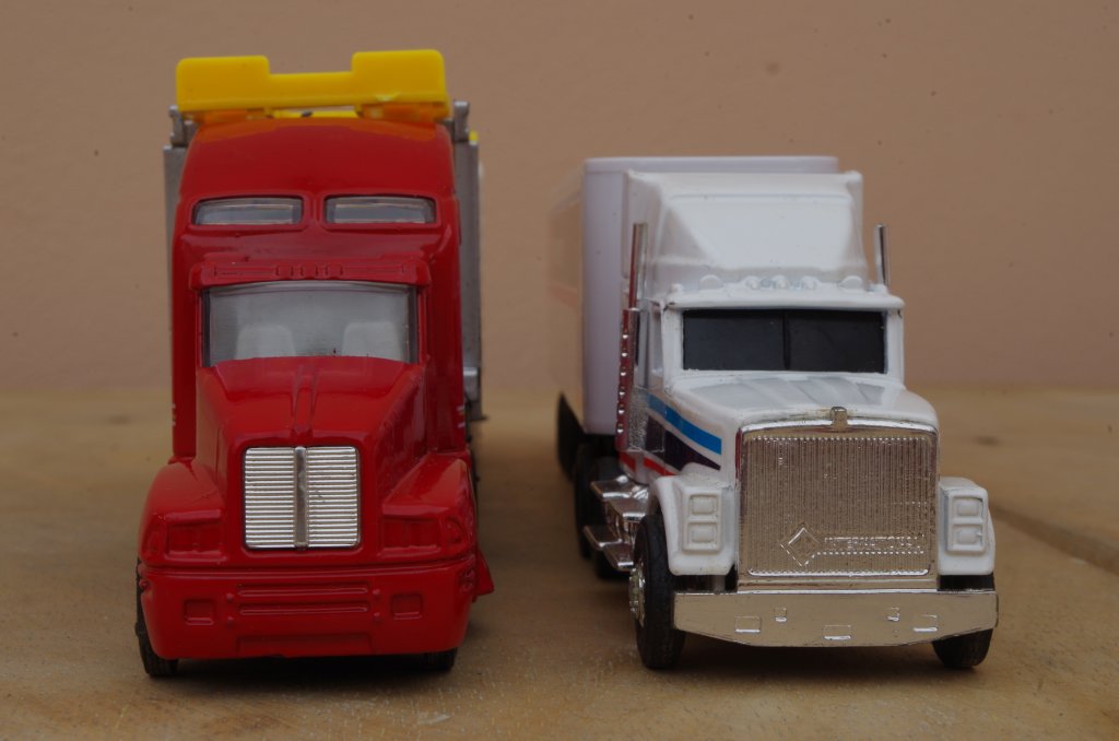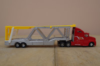 Se trata de un camión transportador hecho en China que viene con 8 autitos y unas señales de tránsito. El que me interesa es el camión en sí. Aunque el remolque es de plástico, el tractor es de metal con base plástica.