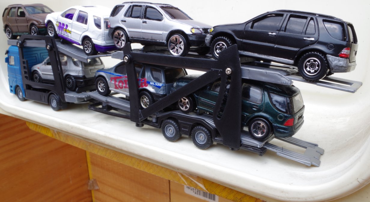 Para complementar el post original con el camión transportador Mercedes-Benz Actros de primera generación hecho por Dickie Toys, ahora presento estas fotos del mismo camión cargado con unas Mercedes-Benz Clase M de primera generación, contemporáneas del Actros, hechas por diversos fabricantes: