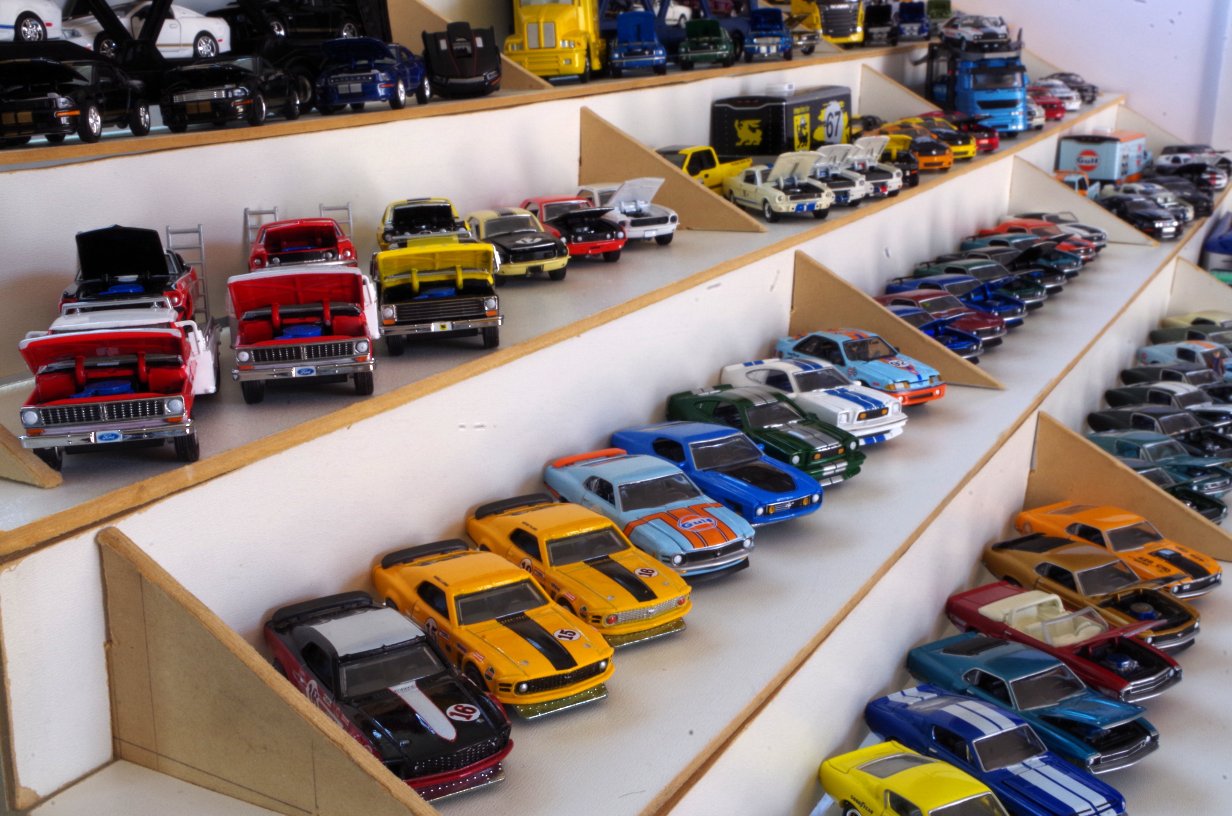 1 Ford Mustang Boss 302 de 1969 y 2 Ford Mustangs Boss 302 de 1970 hechos por Hot Wheels, junto a 1 Ford Mustang Boss 302 de 1970, 1 Ford Mustang Mach 1 de 1973, 2 Ford Mustangs II de 1976 y 1 Ford Mustang GT de 1992 hechos por Johnny Lightning.