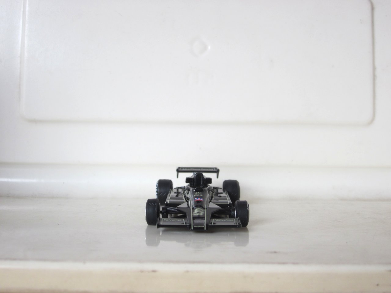 Y aquí junto al Tyrrell P34 hecho por Mini GT, variante azul con amarillo con el #4 y logos de elf y Goodyear (primera edición), representando al auto conducido por el piloto francés Patrick Depailler en el Gran Premio de España: