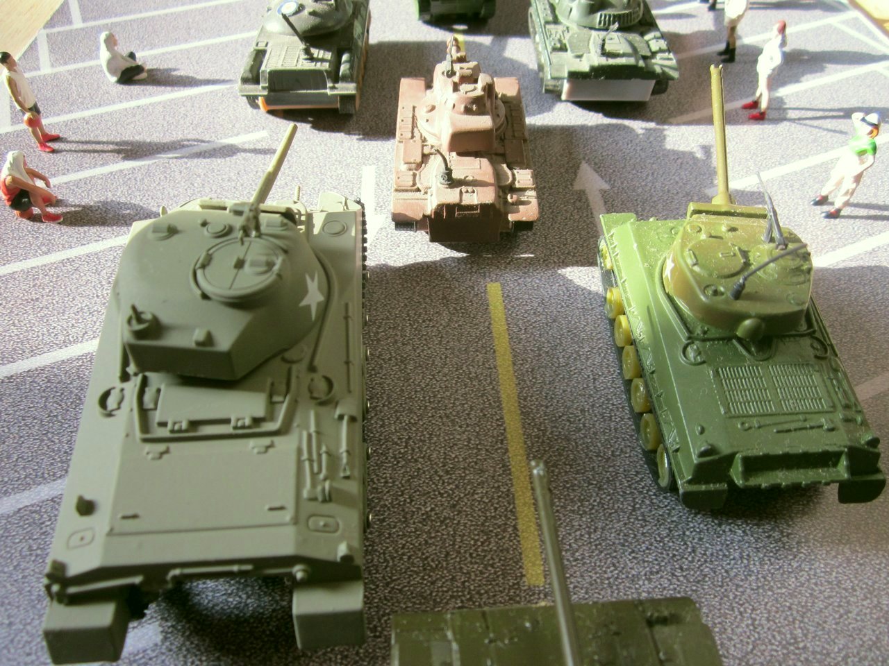 Otras tomas de frente y por detrás de los vehículos del desfile militar, desde un ángulo elevado: