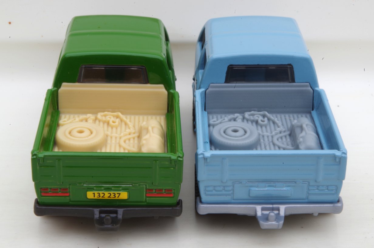 Pick-up Volkswagen T3 doble cabina (DoKa) hecha por Matchbox, variante verde de 2017, versión con carga atrás: